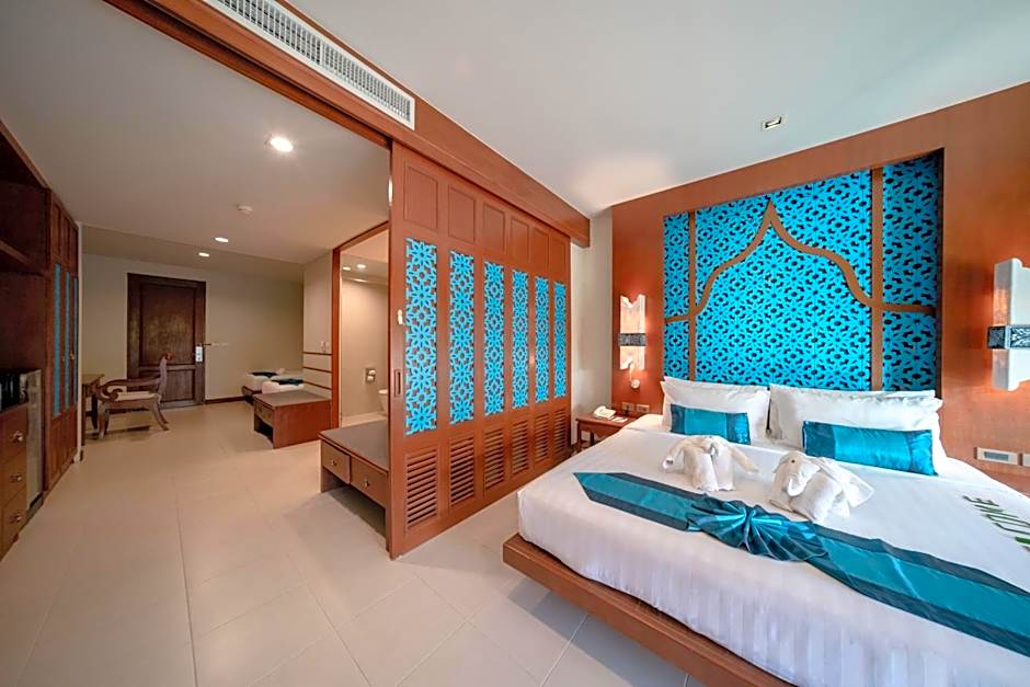 Located on levels 2 to 5, this family room offers a kitchenette with a microwave. It has rain shower facilities and a private balcony which overlooks the pool.