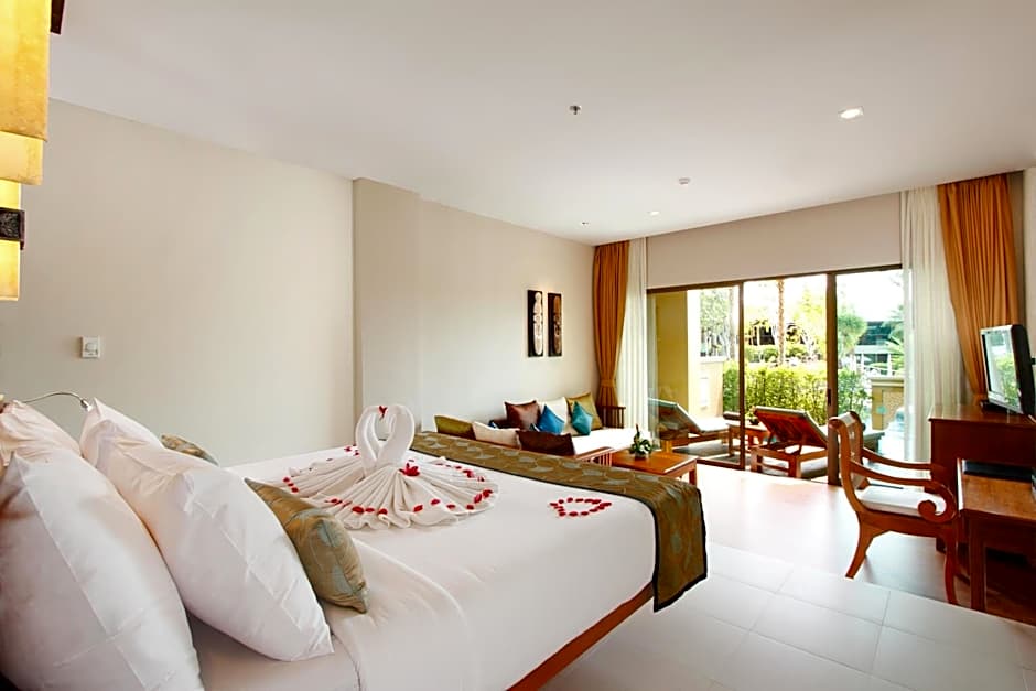 This room features a small private balcony overlooking the pool. Some rooms include a daybed (subject to availability).
